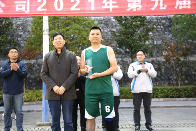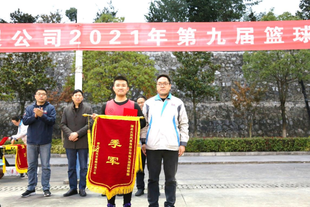 决赛结束后,举行了篮球联赛闭幕式。闭幕式由技术质量分工会主席、技术管理部副经理耿平主持,公司领导贾建军、曹纯儒、邹立宾和雷瑜分别为获奖球队及个人颁奖并合影留念,公司行政副总雷瑜致闭幕词并宣布湖北大运2021年篮球联赛圆满闭幕。