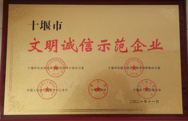 ​湖北大运荣获“十堰市文明诚信示范企业”荣誉称号