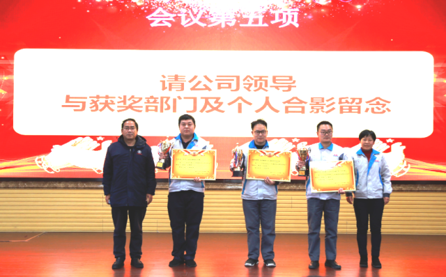 公司领导与荣获2021年度优秀QCD改善的部门和个人代表合影