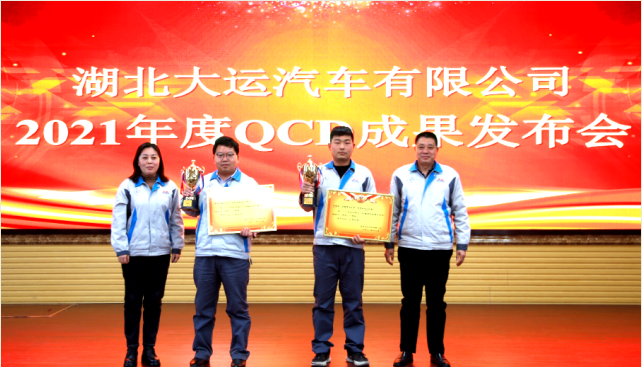 会上,由公司推荐评选出的六个优秀QCD改善项目依次就QCD项目的选题理由、现状把握、目标设定、要因分析、对策制定、效果验证等方面,采用PPT演讲的形式按PDCA、鱼骨图等分析工具,并通过改善短视频对比的方式直观展现了改善成果。各中心副总还穿插对各中心发布的优秀QCD项目进行了点评。荣获年度优秀QCD改善荣誉的部门及个人代表在会上作了发言,介绍了部门一年来的改善经验和成熟做法。改装部《关于气动压桶机的改善》、品质管理部《关于电磁气阀密封性检测的改善》、制造技术部《关于热平衡试验中冷器胶管传感器安装方式的改善》荣获2021年度优秀QCD改善项目三等奖;改装部《测量整车长宽高工具的优化改善》、品质管理部《关于提升玻璃升降器检测效率的改善》荣获2021年度优秀QCD改善项目二等奖;总装部《储气筒合件分装一体化通用工装的设计与应用》荣获2021年度优秀QCD改善项目一等奖。公司领导对获奖的项目和优秀推进部门进行了表彰及颁发奖杯奖牌。