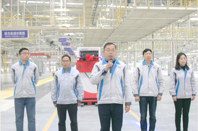 2022年3月12日8:18分,总装生产线搬迁仪式隆重启动。在生产副总蒋显斌的主持下,搬迁车辆满载着挂满红花的设备从老总装生产线徐徐驶出,稳步驶向新总装车间。