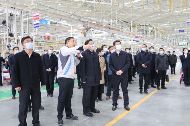 胡亚波书记、黄剑雄市长等拉练团领导一行在张总的陪同下,参观了新建的总装线和涂装线。拉练团领导边走、边看、边交流,不时停下脚步对生产线周边的机器设备、零部件配套商等信息进行询问。在车间现场,现场机器轰鸣,场面热火朝天、员工朝气蓬勃。听完张总对大运二期项目介绍后,胡亚波书记指出,面对日趋激烈的市场竞争,大运公司顺势而为、乘势而上,通过持续追加投资进行技术革新、装备升级和数字化改造,新总装线的建设加快了企业转型升级的步伐,该项目的建成投产对全市汽车零部件行业发展具有带动性、对转型升级具有推动性、对持续发展具有支撑性。各地各部门在抓新项目的同时,也要关注老企业,做到新老并重、互补互促,不断增强经济发展后劲。