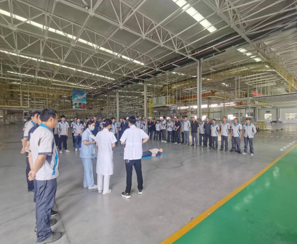 2023年7月6日,茶店镇卫生院在我司举行了急救知识宣讲活动,公司各部门安全员及总装部、改装部、资材部共计100余人参加。