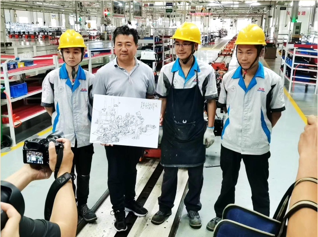 采风团一行来到公司总装车间,听讲解、看宣传片,详细了解了公司的发展历程、业务领域、企业经营等情况。在生产现场,名家老师们看到员工冒着酷暑在车间辛勤工作深受触动,现场即兴为工人创作了肖像画。通过采风创作、沟通交流,感悟历史之变、时代之变,感受十堰郧阳地区厚重的历史文化传承与文化创新。名家老师们纷纷表示,将努力创作出更多优秀的作品,为十堰文学事业和经济社会高质量发展贡献文学力量。(办公室 柯婷婷)