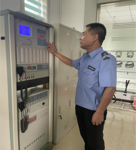 治安科冯根平启动消防报警系统