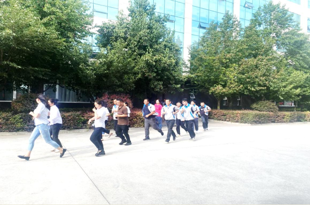 办公楼工作员工在听到火警报警声音后,各部门迅速组织部门员工,紧张有序地向办公楼外进行撤离,在撤离过程中有效采用可用物品对口鼻进行防护。在安全点集合后,各部门对本部门员工进行人员清点,确保不漏一人。