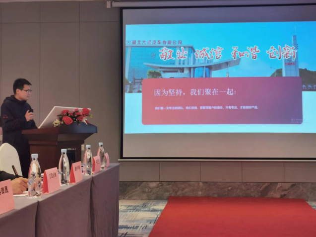 诚信铸就品质,创新引领未来,会上,湖北大运区域负责人许英杰向与会嘉宾详细介绍了大运集团的情况,阐述了湖北大运的产品与服务、市场与营销、发展与计划、前景与未来,充分的展示了湖北大运的实力,进一步加深了经销商们对湖北大运的认可,领先的公告、产品、质量与服务,让经销商充满信心。