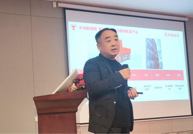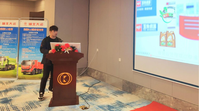 优秀经销商代表江西国重周总在发言中讲到他是在21年走访市场,考察后发现湖北大运的产品公告齐全、品系丰富、质量可靠、服务及时,非常适合当地需求,周总表示愿意紧跟大运步伐,把湖北大运汽车在江西区域做大做强,共创辉煌。