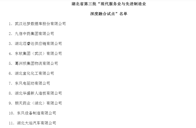 近日,省发改委公布《关于印发湖北省第三批现代服务业与先进制造业深度融合试点单位名单的通知》,湖北大运公司被确定为2023年省级现代服务业和先进制造业融合发展试点企业。