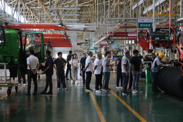 来宾们在工作人员的带领下,先后参观了湖北大运生产线、检测中心、总装车间、改装车间等。在生产车间,来宾们表现出浓厚的兴趣,他们不时地向工作人员询问生产情况。公司讲解员向来宾们详细介绍了公司先进的设备、工艺、流程以及质检程序,一流的设备与工艺、严苛的质检标准、精益求精的工作作风,这些都赢得了大家的高度评价和赞扬,展示了湖北大运作为一流现代化企业的形象和实力。