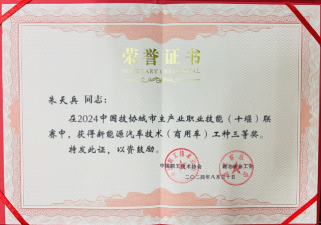 ​湖北大运在中国技协城市主产业职业技能(十堰)联赛中获奖