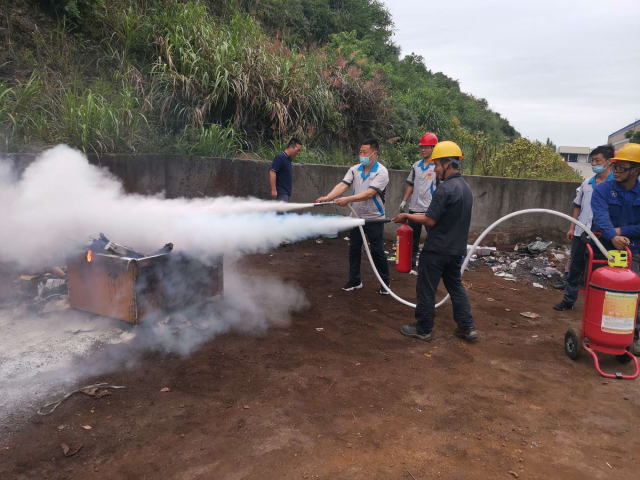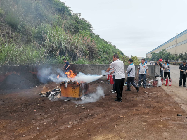 为切实加强公司的日常安全工作,提高全员安全消防素质和安全防范能力,2021年6月17日下午4点,安技环保部组织改装部、总装部、资材部、企管部、办公室、涂装车间、喷蜡车间相关人员共计63人,在改装车间工业垃圾池旁开展了安全月消防演练活动。