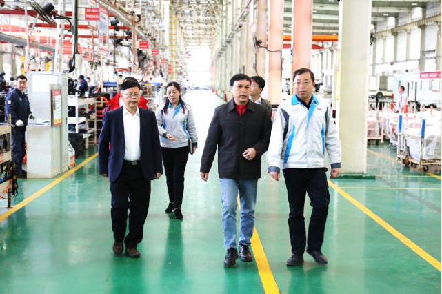 湖北大运张鸽总经理陪同玉柴集团李汉阳董事长对总装生产线参观调研
