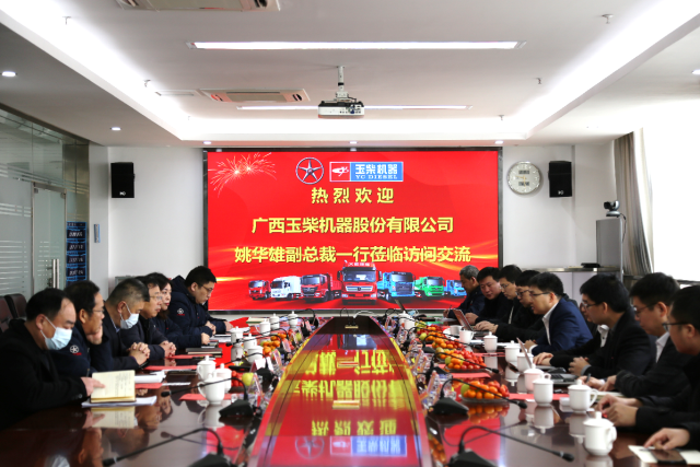湖北大运总经理张鸽对广西玉柴副总裁姚华雄一行的到访表示欢迎