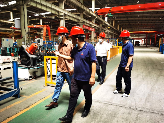 公司技术总师曹纯儒为张院长讲解我司生产制造情况