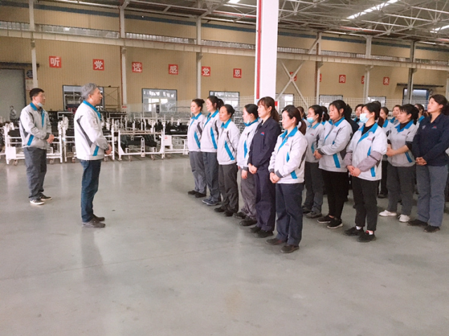 公司生产副总蒋显斌在改装部慰问女员工并为她们送上慰问红包