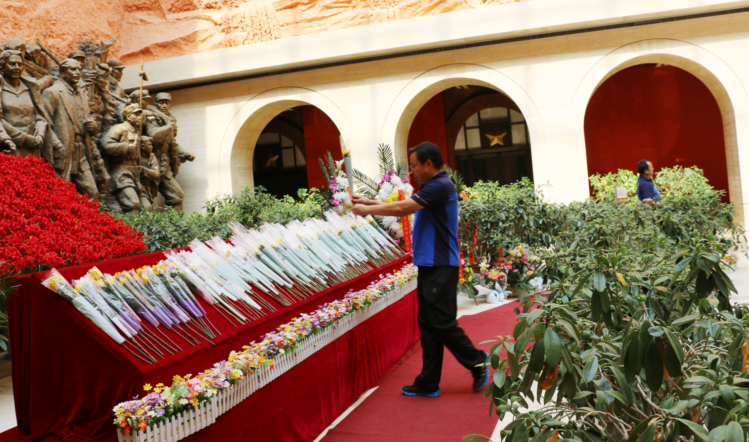 下午3点左右,全体党员怀着敬仰的心情参观了革命纪念馆,重温了中国共产党领导人民取得全国革命胜利的光辉历程。在延安革命纪念馆一楼展厅,公司党总支书记张鸽同志代表党总支向“五大领袖”和革命先烈敬献鲜花,向革命先烈鞠躬致敬。