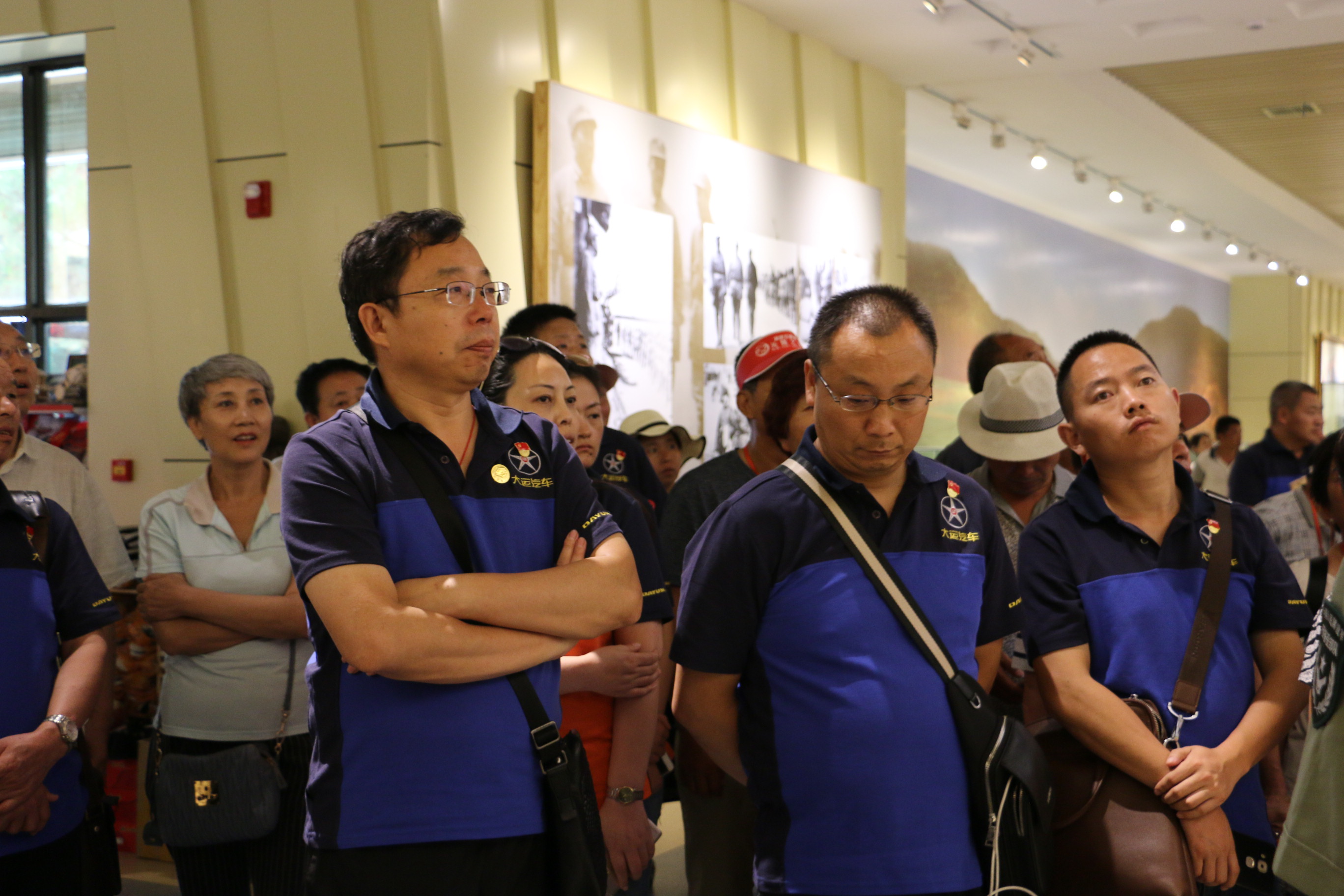 党员们在延安革命纪念观看历史图片