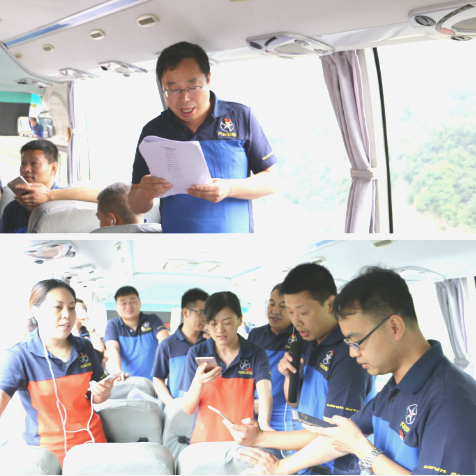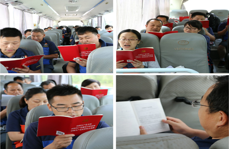 全体党员在大巴车上集体诵读《党章》