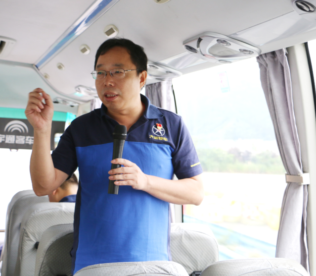 公司党总支书记张鸽在前往延安的大巴车上向全体党员强调组织此次活动的意义