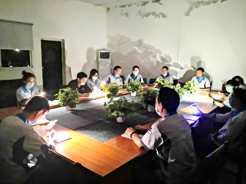 因为雷雨原因,培训刚进行20分钟,就遇停电,整个会议室漆黑一片。生产党支部书记胡丹丹问:“既然停电了,党课是继续呢还是改天再组织?”但现场10名积极分子均表示:“书记,我们有手机,党课还能进行。”说着,大家纷纷把手机的“手电筒”功能打开,不一会,会议室明亮起来,生产党支部的微型党课得以继续进行。