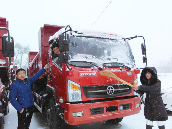 2015年11月25日,河北普降大雪,商用车销售受到了影响,但邢台6位商用车用户穿着厚厚的羽绒服,顶着鹅毛大雪出现在邢台鑫发汽车贸易有限公司,仔细挑选着运途自卸车。