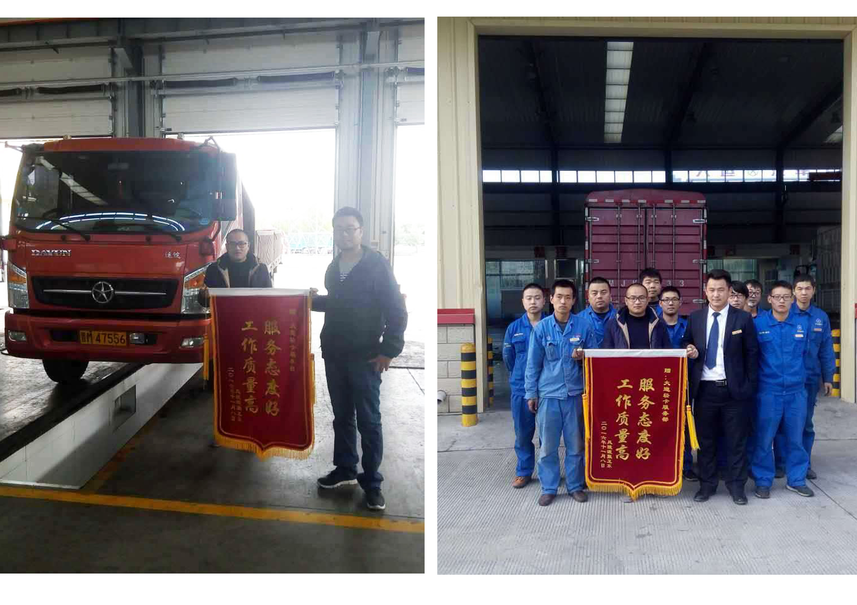 11月8日,售后服务部山西片区负责人金龙从运城传回鼓舞人心的喜讯,运城12台车团体用户,为表达对湖北大运贴心服务的感激之情,委派代表手捧精制锦旗,兴高采烈的送往运城服务站,亲切问候服务团队并与之合影留念,留下了大运和用户之间温馨和谐的画面。收到照片后,售后服务部的同事们每个人脸上难以掩饰的自豪感油然而生,工作热情被点燃得更浓、更旺。心中万分感慨:踏实做好每一天的工作,赢得好的口碑和理解,付出的一切辛勤与汗水都是有收获的。