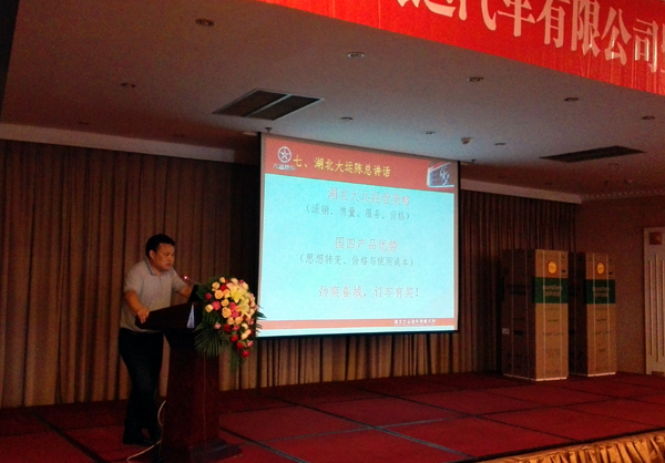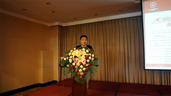 会议最后,公司销售副总陈永生向与会人员介绍了湖北大运的经营策略,从产品的适销性、质量、服务、价格等方面讲述了湖北大运一直以来以市场和客户需求为本、以质取胜的企业理念,引起与会人员的共鸣。同时陈总也对国四车型产品从技术领先、价格对比、低油耗,以及后续的二手车过户政策优势等方面做了详细说明,使新老用户及与会人员对国四产品有了更充分的认识和认同,激起了新老用户对湖北大运国四车型购买的决心!