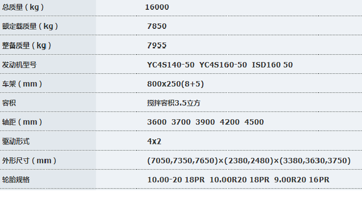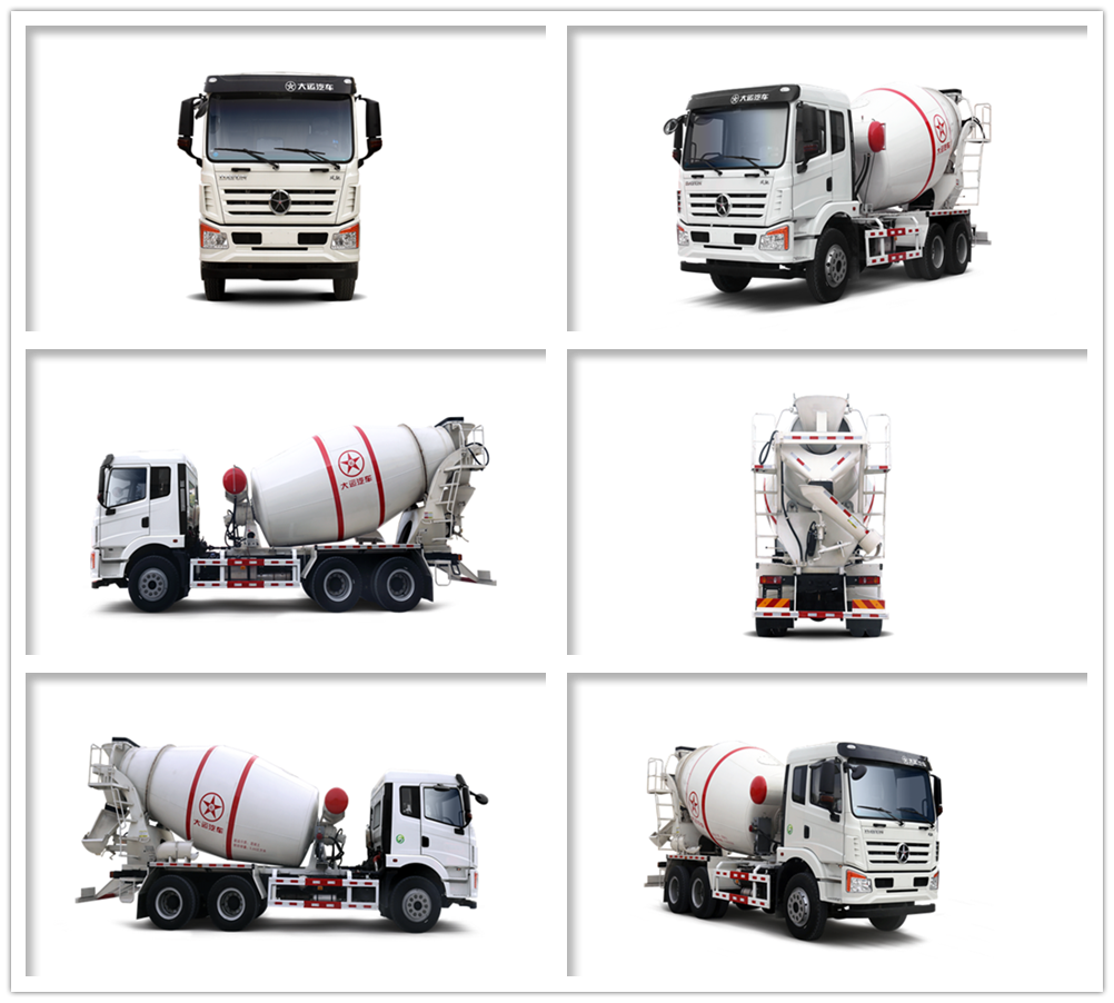 车型特点 1.豪华宽体车身。车身宽度2250mm,驾乘空间为同类产品中最宽;增加导流槽等低风阻设计更加省油。 2.高承载力。采用5T前桥,153/457双后桥,大大提高承载力;一次合压成型大梁,经久耐用,重压不变形。 3.制造精良。专业搅拌筒扩容设计,匀质性好、不离析,装料空间大;搅拌筒采用集成自动焊(有效保证焊接质量)及喷丸、防锈处理、烤漆工艺,有效地延长使用寿命;轻量化设计,采用高强度耐磨材料、闭式液压系统,更耐用,更可靠;低质心、低倾角设计使车辆行驶中性能更好更稳定。