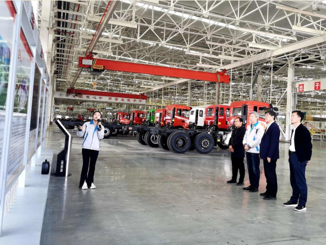 郑力一行深入公司总装部装配现场,就公司的生产经营、产品转型升级等情况进行考察调研。在总装车间现场,行政副总雷瑜详细介绍了湖北大运的发展战略、产品规划及公司的生产运营情况,曹总就公司发展中遇到的“新能源商用车新品开发过程中的整车控制逻辑、三电控制逻辑”、“新能源商用车的轻量化开发思路和解决路径”等问题向专家现场咨询请教。