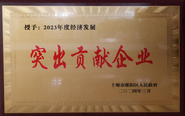 近日,郧阳区委、区政府对2023年度经济发展突出贡献企业、进行表彰奖励,湖北大运汽车有限公司被授予“郧阳区2023年度经济发展突出贡献企业”荣誉称号。