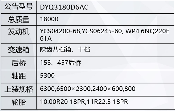 采用国内一线品牌潍柴、玉柴国六排放发动机,整车传动系精致匹配,节油设计,动态响应快