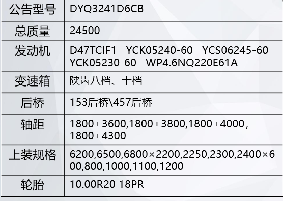 采用国内一线品牌潍柴、玉柴国六排放发动机,发动机扭矩在国五基础上同马力提升50N.M,整车传动系精致匹配,节油设计,动态响应快