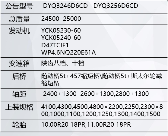 采用国内一线品牌潍柴、玉柴国六排放发动机,整车传动系精致匹配,节油设计,动态响应快