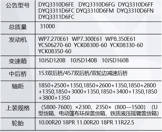 采用国内一线品牌潍柴、玉柴国六排放发动机,整车传动系精致匹配,节油设计,动态响应快
