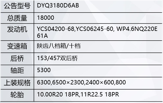 采用国内一线品牌潍柴、玉柴国六排放发动机,整车传动系精致匹配,节油设计,动态响应快