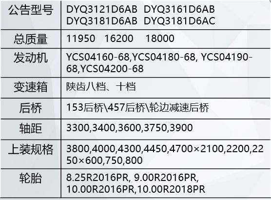 采用国内一线品牌潍柴、玉柴国六排放发动机,整车传动系精致匹配,节油设计,动态响应快。操纵轻便 速比宽。陕齿八/十档箱,挂档轻便,可根据需求搭载匹配