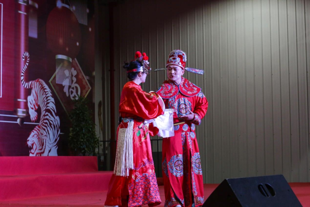 产品研发部选送的相声《虎年说虎》,表演者:陈瑞丹、黄康隆