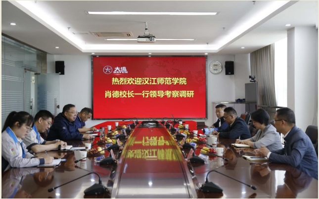 4月15日,汉江师范学院党委副书记、校长肖德一行莅临湖北大运考察调研产教融合情况。总经理张鸽、生产副总韩志、总经理助理王武勇陪同调研。