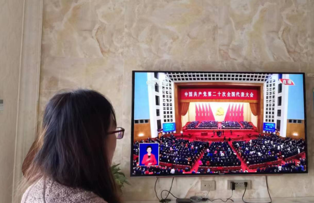 技术质量党支部党员王慧在家收听收看党的二十大开幕会实况