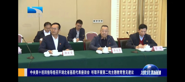 10月20日,主题教育中央第十巡回指导组在汉召开部分省党代表和全省“两优一先”代表座谈会、部分两新组织党组织负责人座谈会,深入学习贯彻习近平总书记关于主题教育系列重要讲话和重要指示批示精神,贯彻落实中央主题教育有关部署要求,听取关于主题教育开展情况、体会感受和意见建议。中央第十巡回指导组组长张裔炯主持会议并讲话,湖北省委副书记、省委主题教育领导小组副组长诸葛宇杰出席。中央第十巡回指导组成员,省委主题教育领导小组办公室有关负责同志参加会议。公司党总支副书记雷瑜作为十堰市唯一非公企业代表应邀参加了会议,并作了交流发言。
