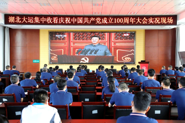 7月1日,伟大的中国共产党迎来百年华诞。上午8时,举世瞩目的庆祝中国共产党成立100周年大会在北京天安门广场隆重举行,湖北大运公司组织全体党员、入党积极分子和副主管级以上管理人员100余人在公司九楼会议室集中观看了大会实况直播,认真聆听了习近平总书记在大会上的重要讲话,对收看人员进行了一次良好的党的历史、党的知识和发展形势的生动教育课。