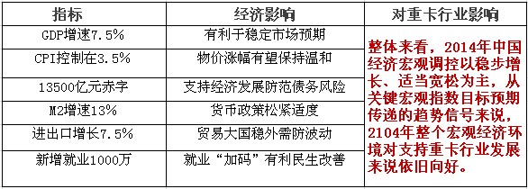 六大指标,释放2014年中国宏观经济稳步增长信号,利好重卡行业